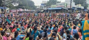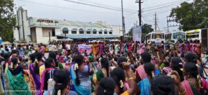 அதன்படி இன்று தஞ்சாவூர் பழைய பேருந்து நிலையம் அருகில் பனகல் கட்டிடம் முன்பாக பெருந்திரளான மகளிர்கள் கூடி முழக்கங்கள் எழுப்பி,